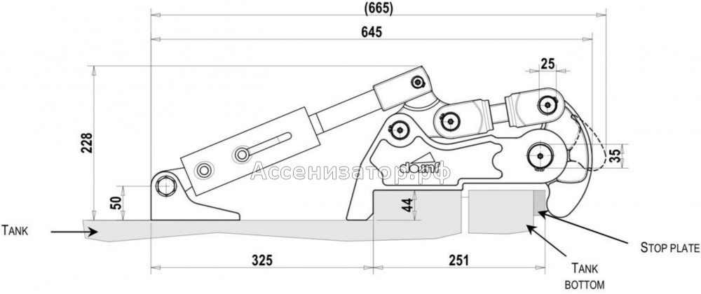 Гидравлический зажим (защелка) заднего донышка ассенизатора 1830000810