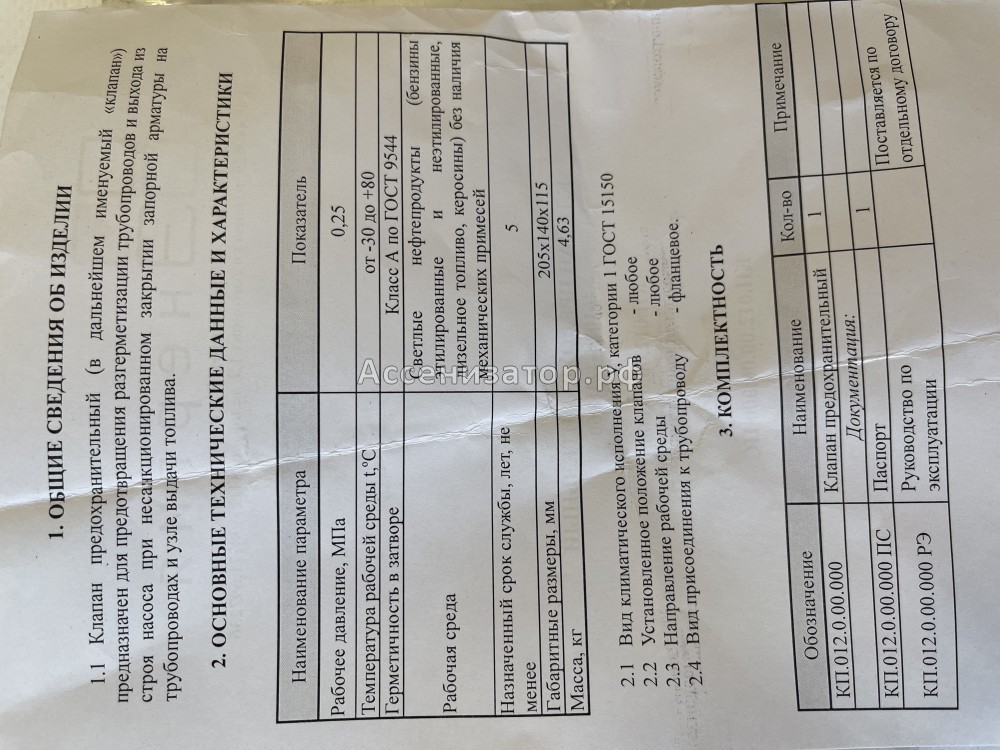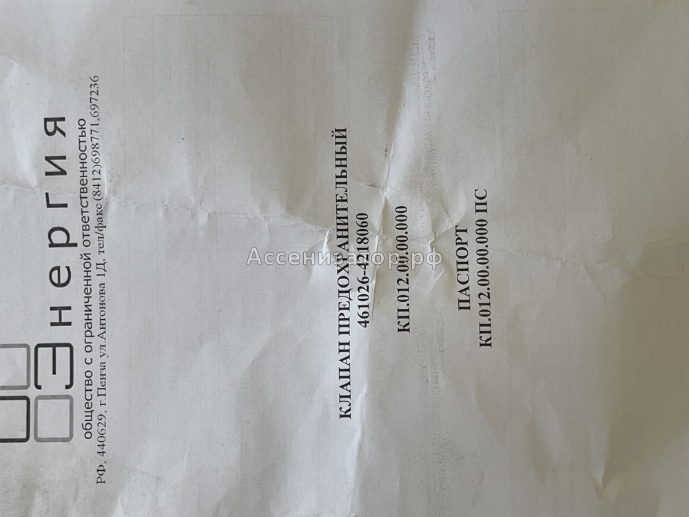 Технические характеристики клапана предохранительного 461026-4218060: