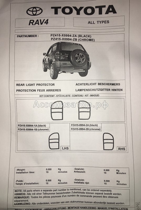 Хромированные накладки задних фонарей TOYOTA RAV4 PZ415X0994ZB 2000-2005