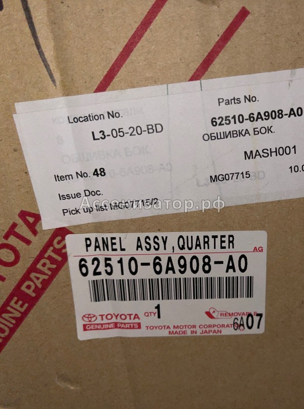 Купить Обшивка багажника правая TOYOTA LC Prado 120 625106A908A0 вы можете в компании Ассенизатор.рф, оформив заказ в интернет магазине, или отправив заявку по почте, а также по телефону или в офисе компании .