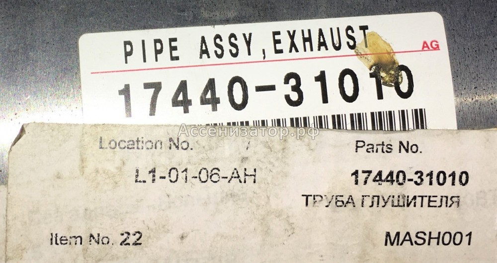Труба глушителя TOYOTA 1744031010 новая, оригинальная.